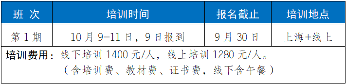 2.培训福利1)参加培训赠送正式出版的培训教材;2)每门培训课程开通之日起30天学习;3)培训结束考核合格颁发相应培训证书;4)针对工作中的实际问题提供免费在线答疑。